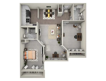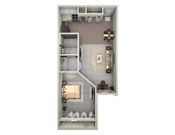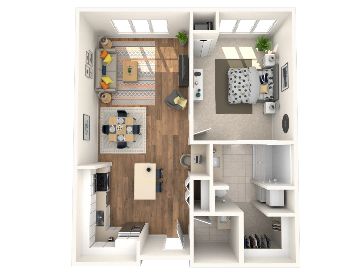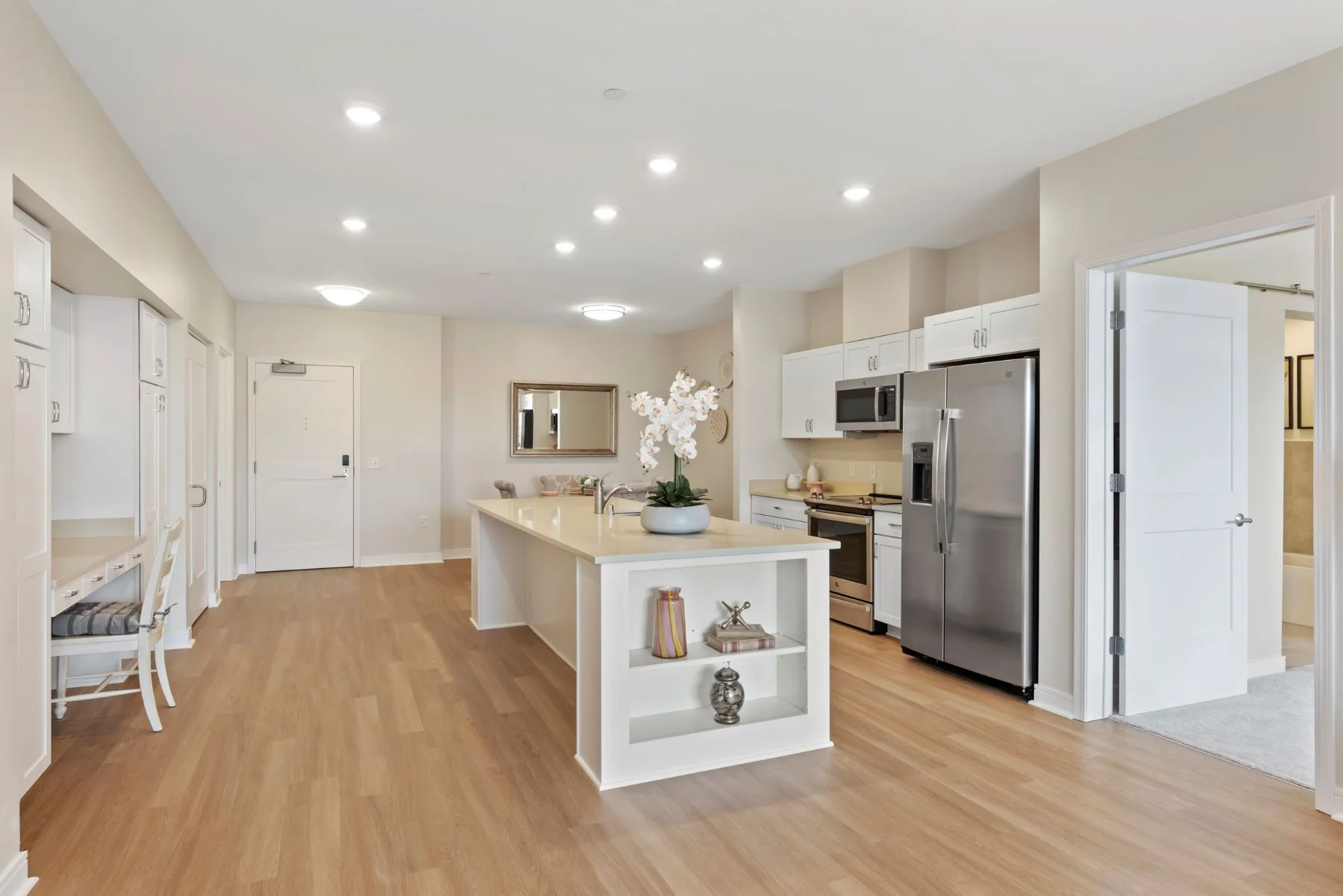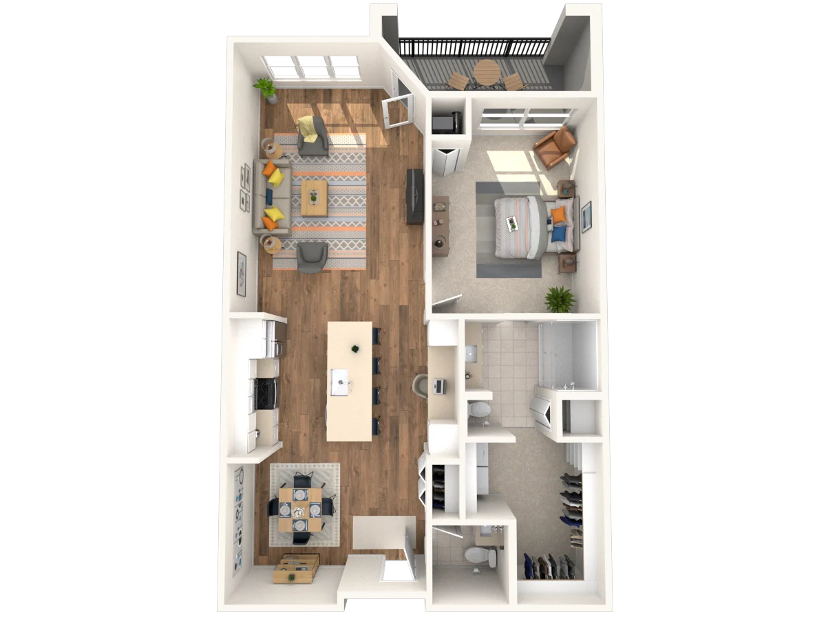 Discover the One Bedroom Custom suite, which includes a private bathroom and pass-through closet. Plus, a generous living space flows into the kitchen.