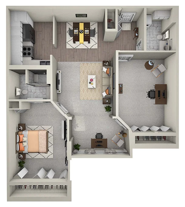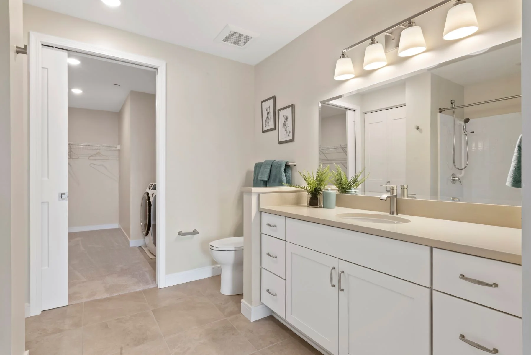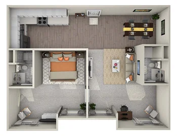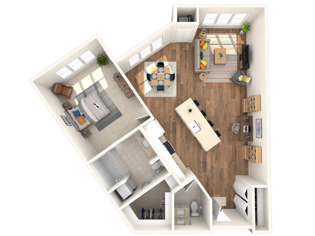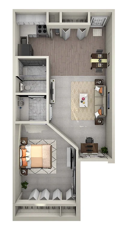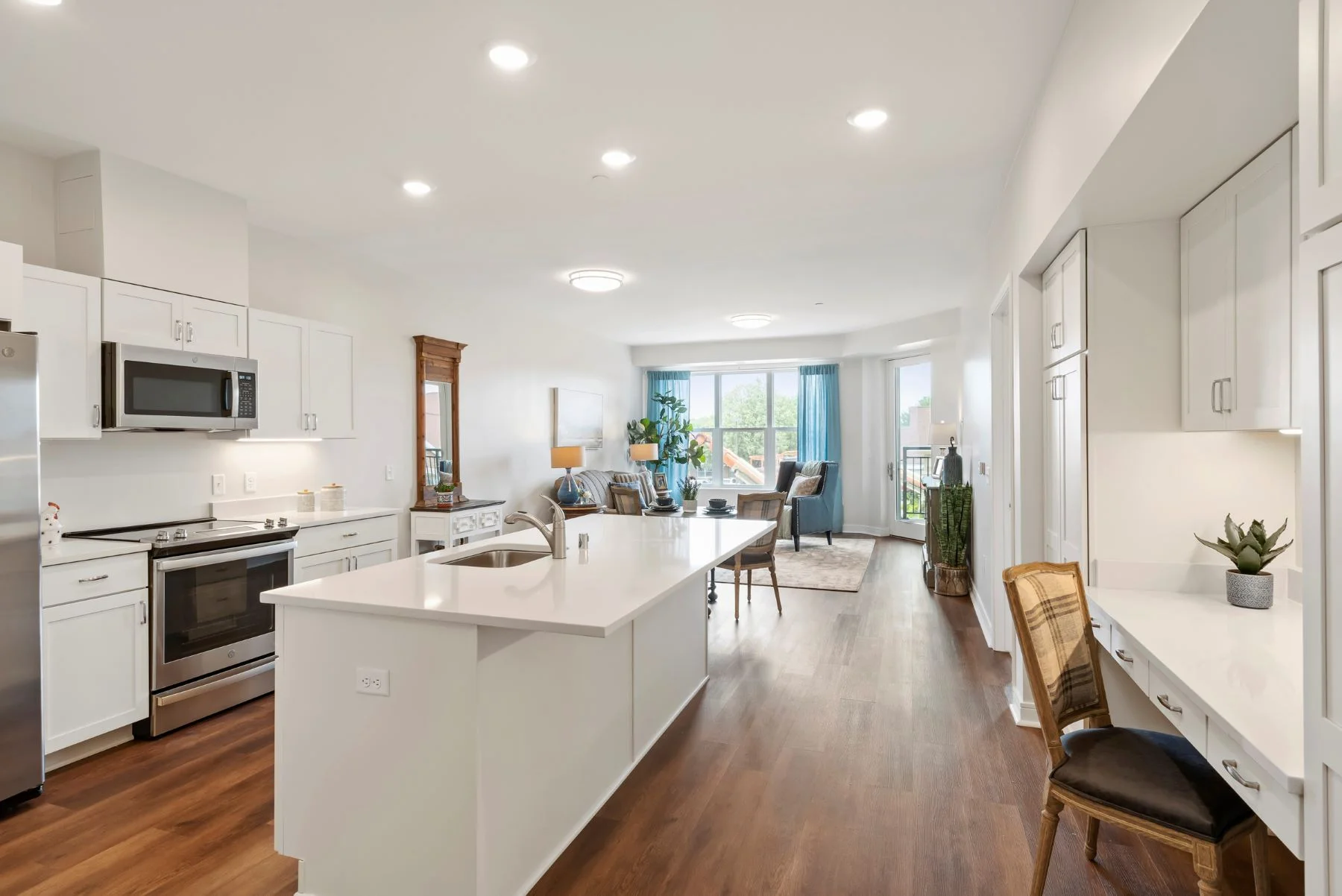 Discover the One Bedroom Custom suite, which includes a private bathroom and pass-through closet. Plus, a generous living space flows into the kitchen.