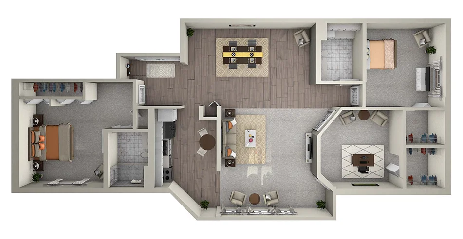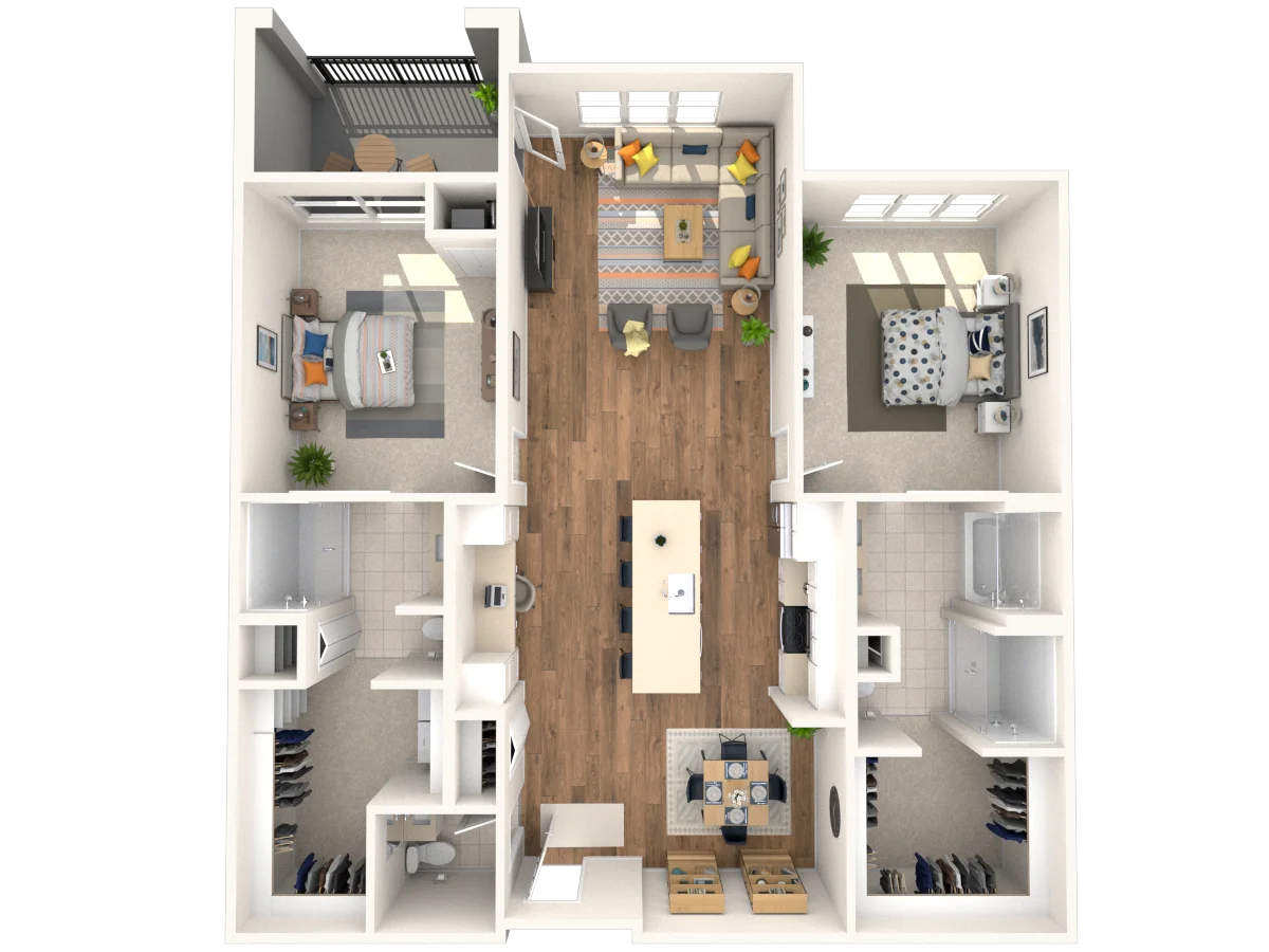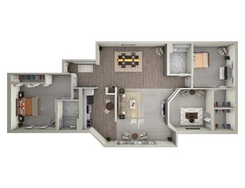 Complete the form below to learn about our Ready List. This classic two bedroom is perfect for couples or an individual who enjoys extra space for an office or guests. Also features a cute kitchen, dining area, and large living space.